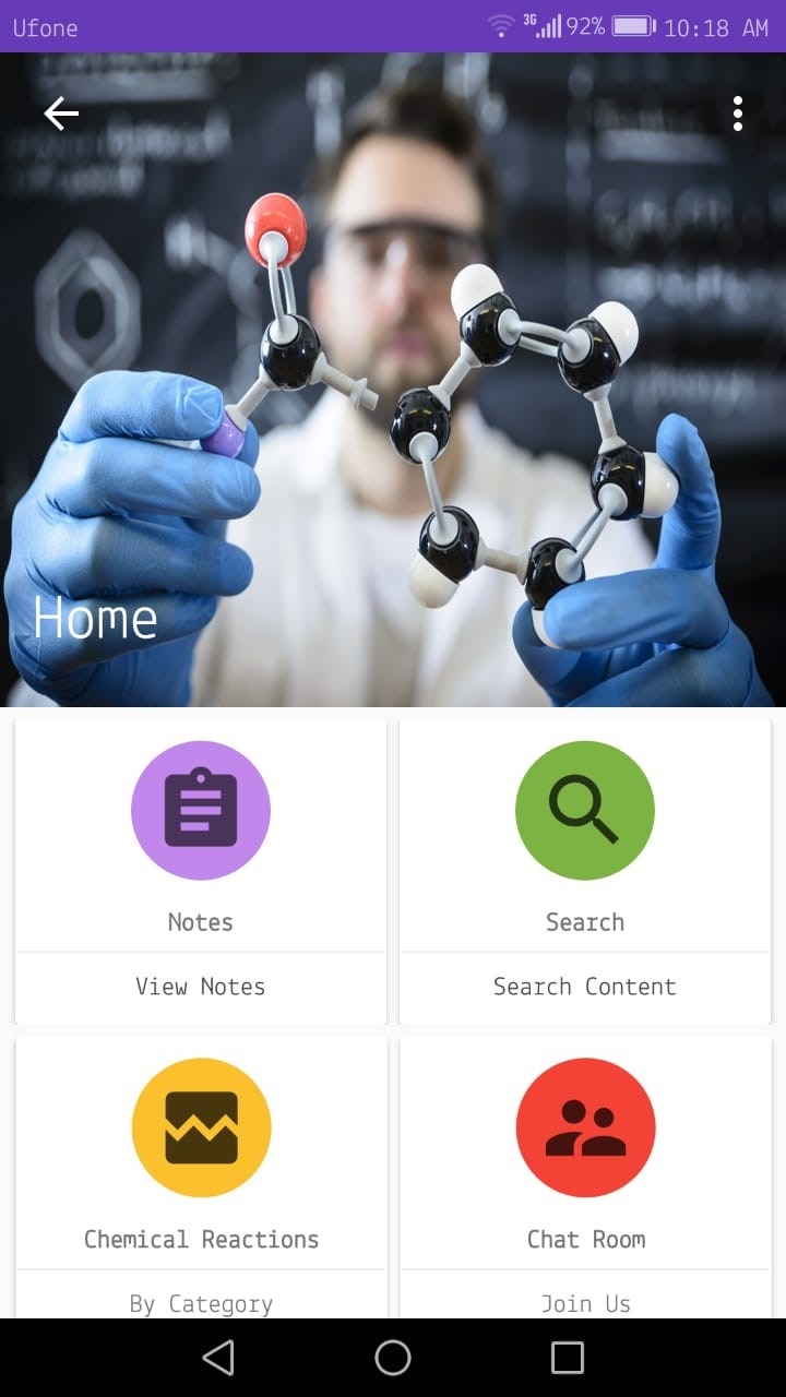 Our application comprises notes and materials that are categorized into two portions. One is for beginner’s level and the other is for intermediate level. A person with very little knowledge of chemistry will use the beginner’s portion. This portion includes the basic information and introduction to the subject. In addition, the user will be given an introduction to the chemicals that are commonly used in the field. Knowledge about the small and safe experiments is also added to the application. There are online tutorials that users can watch and a discussion forum where users can post their questions.